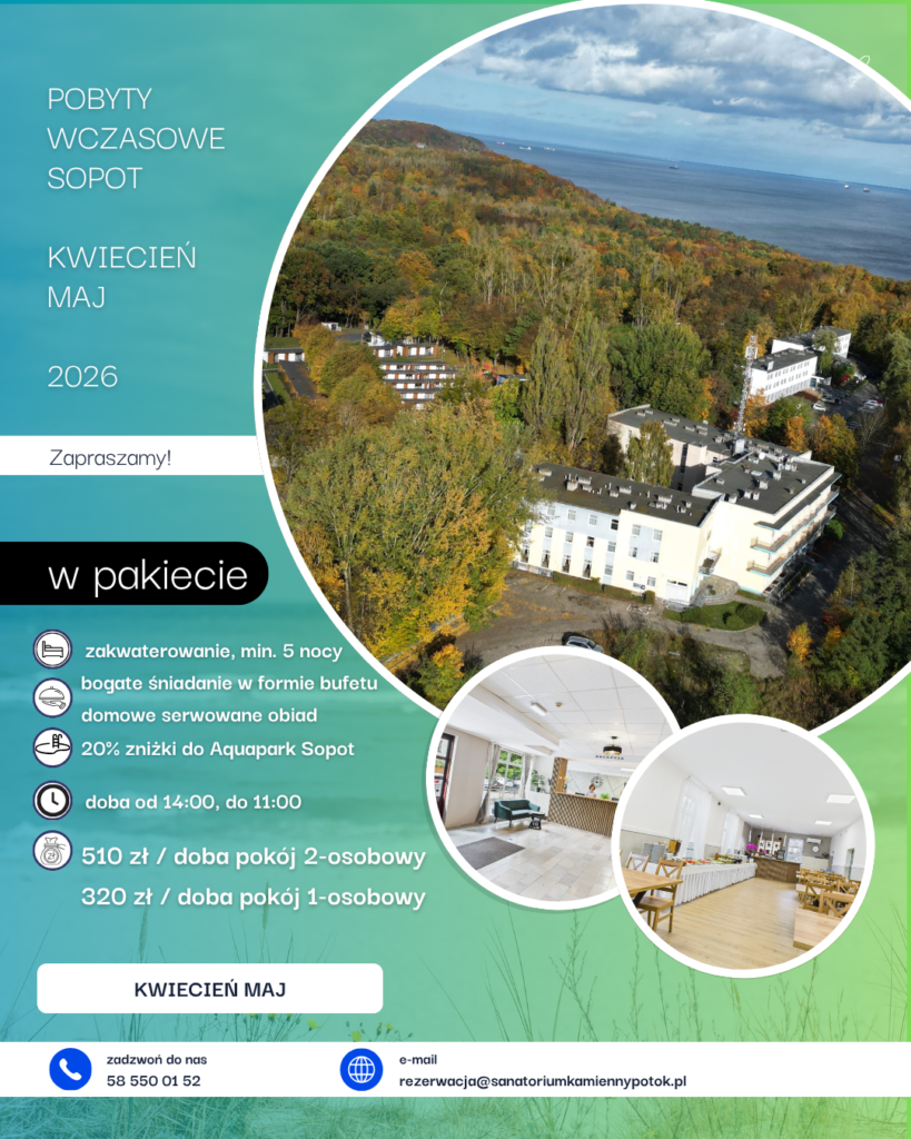 Śniadania wydawane są w godzinach 7:30 – 9:00, obiady serwowane do stolika o 13:00, 14:00 lub 15:00. Dla Gości chcących pozostać trochę dłużej w Sopocie przygotowaliśmy ofertę wczasową w korzystnych cenach, jest to zakwaterowanie ze śniadaniem i obiadem – pakiet musi trwać co najmniej 5 nocy.